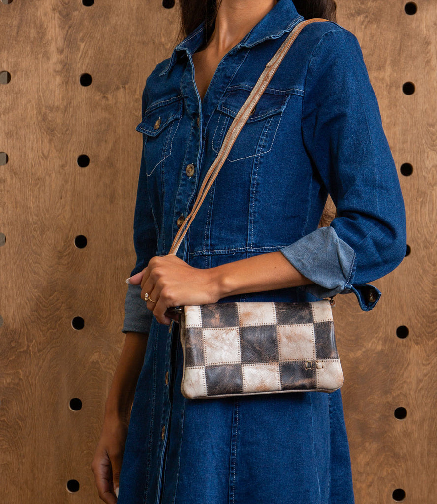 Cadence PW is a versatile leather essential crafted in a rich, lived-in finish. Designed to move with you, it shifts easily from wallet to clutch to crossbody with two removable straps. The patchwork design makes this bag unique and epitome of handcrafted. A secure exterior pocket and organized interior with zippered compartments and card slots keep everything in place, while the sleek magnetic closure adds a refined touch—perfect for travel, evenings out, or everyday errands.