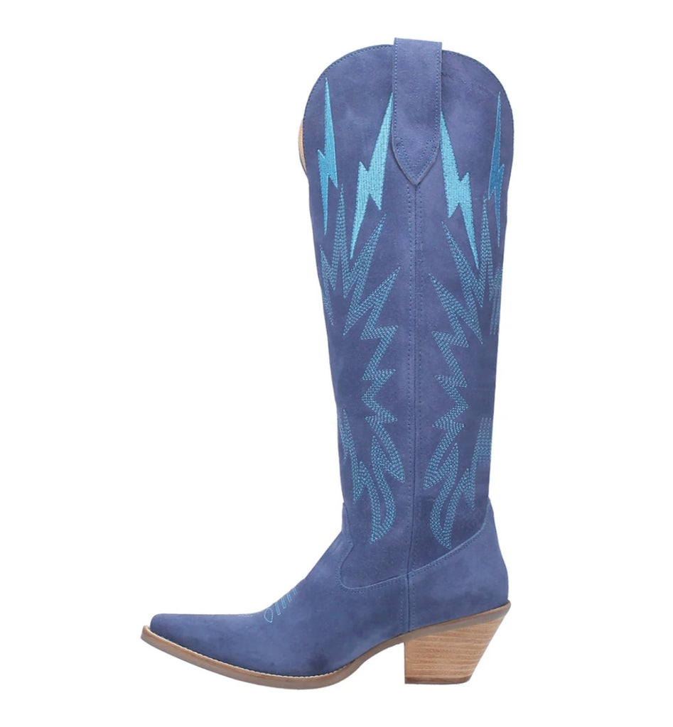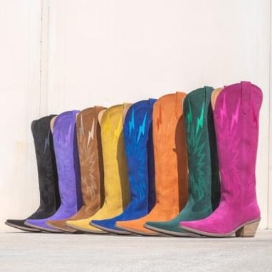 Looking to cause a storm? Put some lightning in your step with the Thunder Road boot from Dingo1969. This 16-inch boot comes in a variety of color options for adding flash to any moment, and with its 2 ½ inch heel and fashion snip toe, the Thunder Road is just electric.