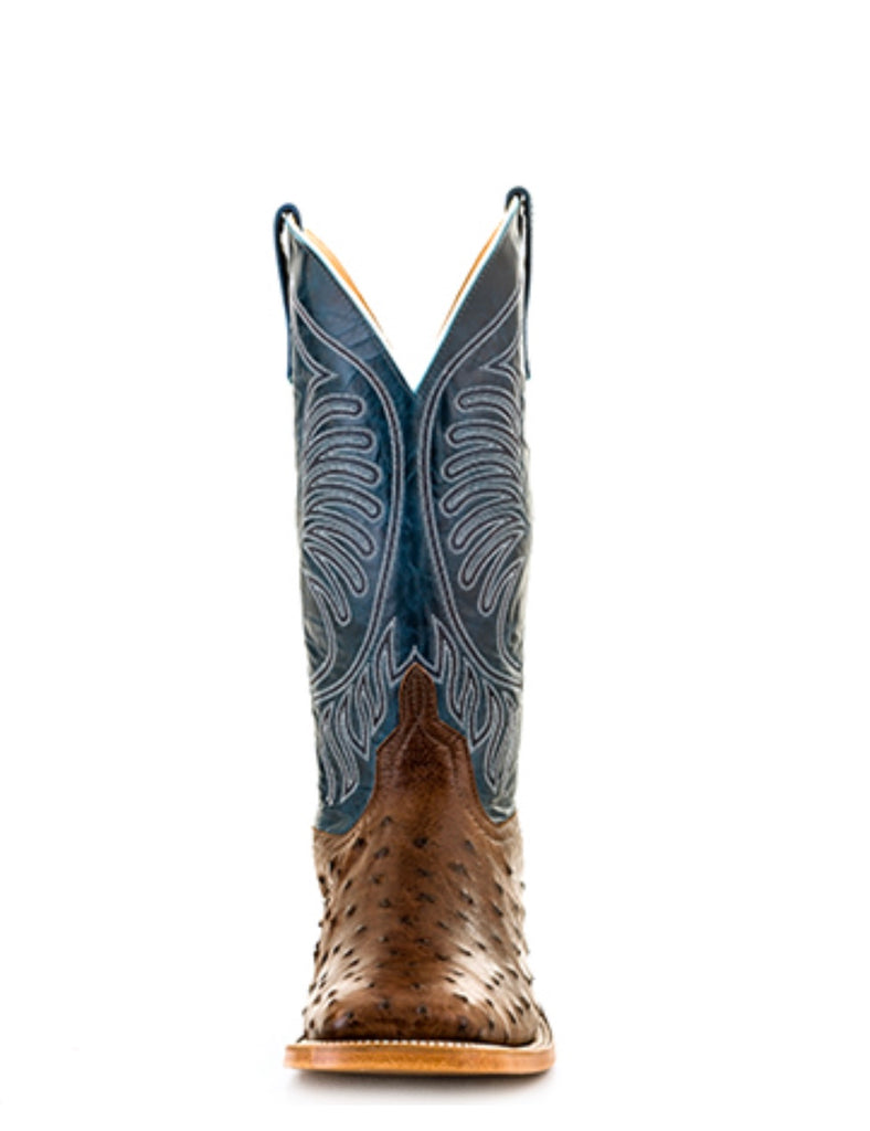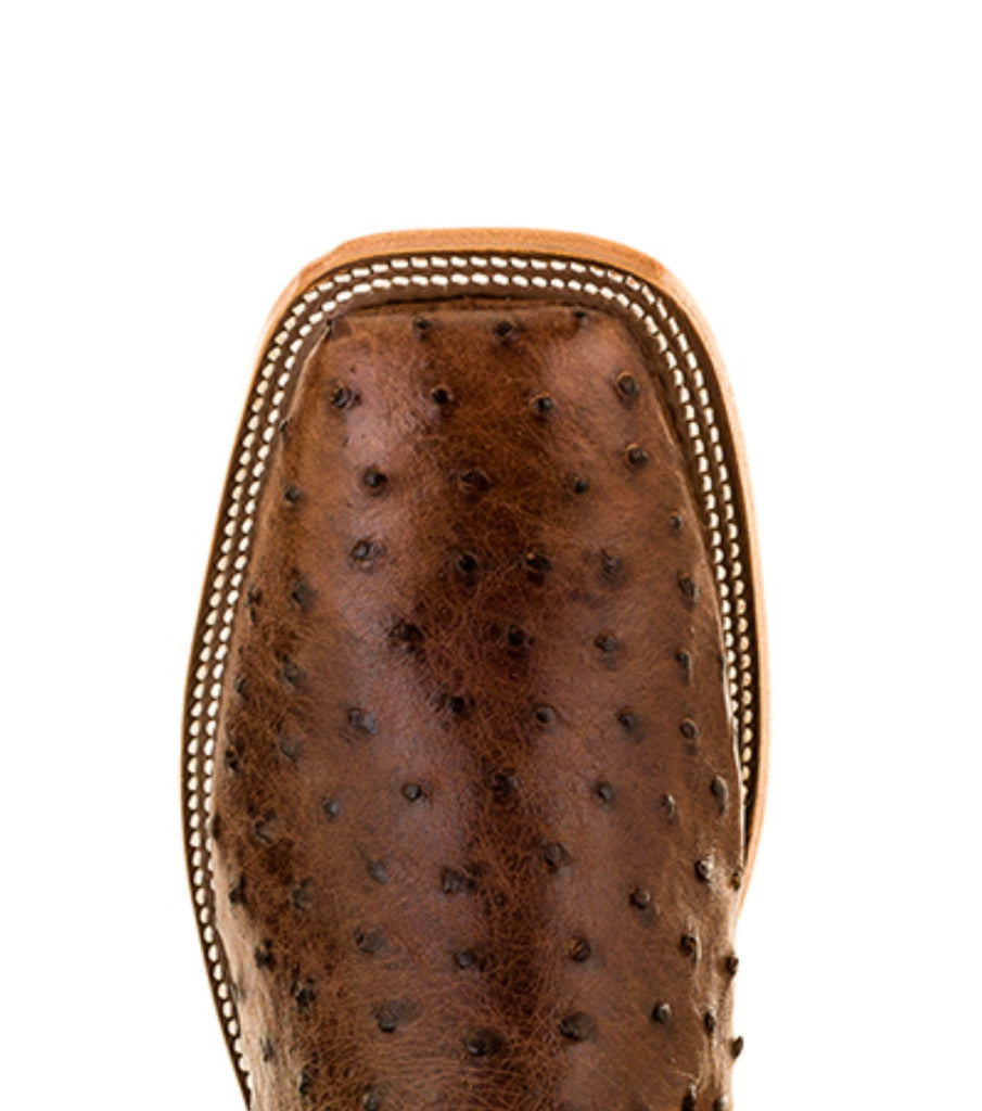 Ostrich is the softest and most comfortable of the “exotic” leathers. It wears well and resists scratching and scuffing – a combination of softness and toughness. Ostrich is naturally resistant to barnyard acid. The quill pattern determines the price of genuine ostrich boots. Where you get a full quill pattern all over the foot, you are buying a much more expensive boot. The size of quill bumps depends on the age of animal and the portion of the hide from which the leather is cut. Ostrich is that ideal combination of durability and wearability which makes it the perfect leather for boots. Always wipe the dust and dirt off ostrich boots after wearing.