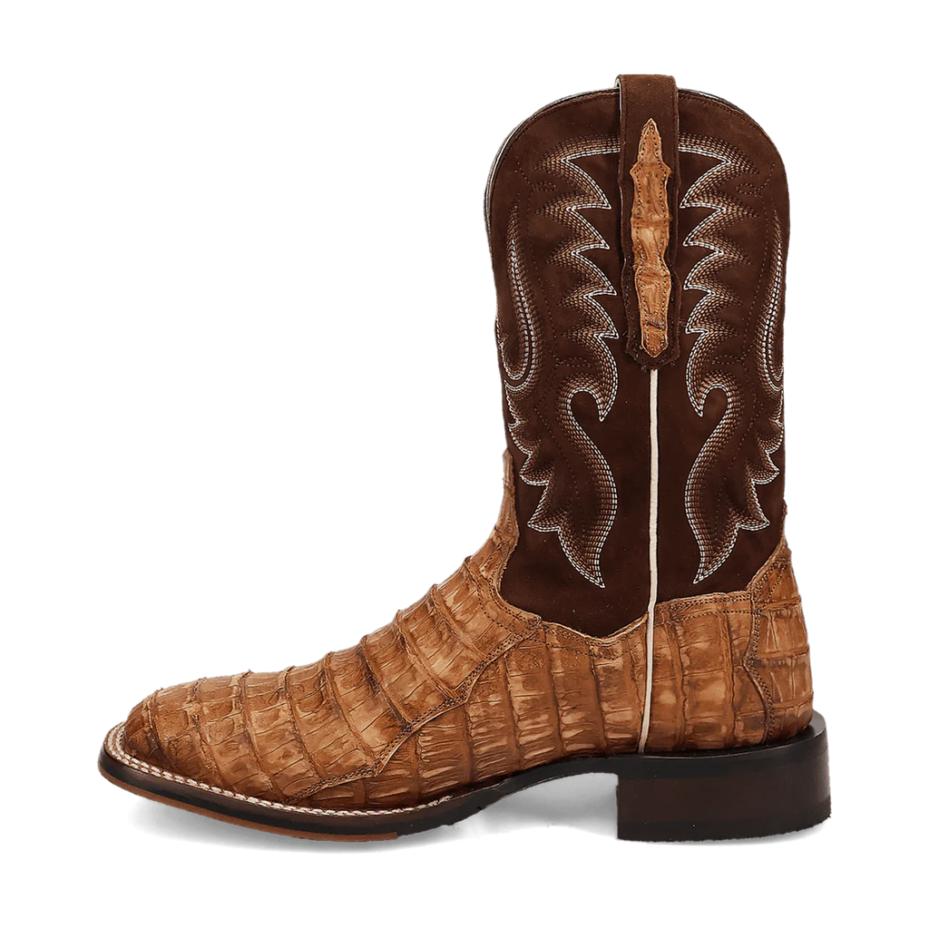 The Cowboy Certified Leon boot from Dan Post seamlessly blends contemporary and Western flair. Handcrafted from genuine caiman leather, this 11-inch boot features a removable soft strike orthotic, ROM toe, and stockman heel—making it the perfect choice for both long days on the ranch and stylish outings in town.
