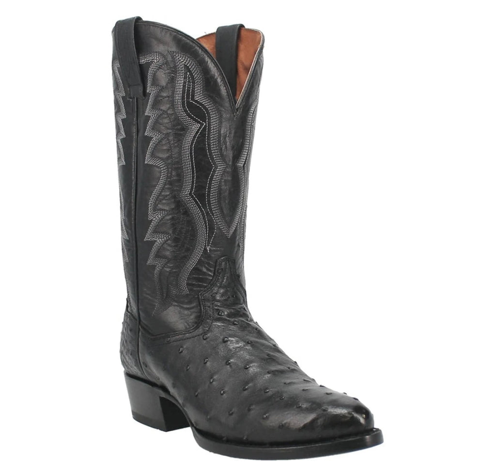 Men's Dan Post Tempe Black Full Quill Ostrich R-Toe - DP2323