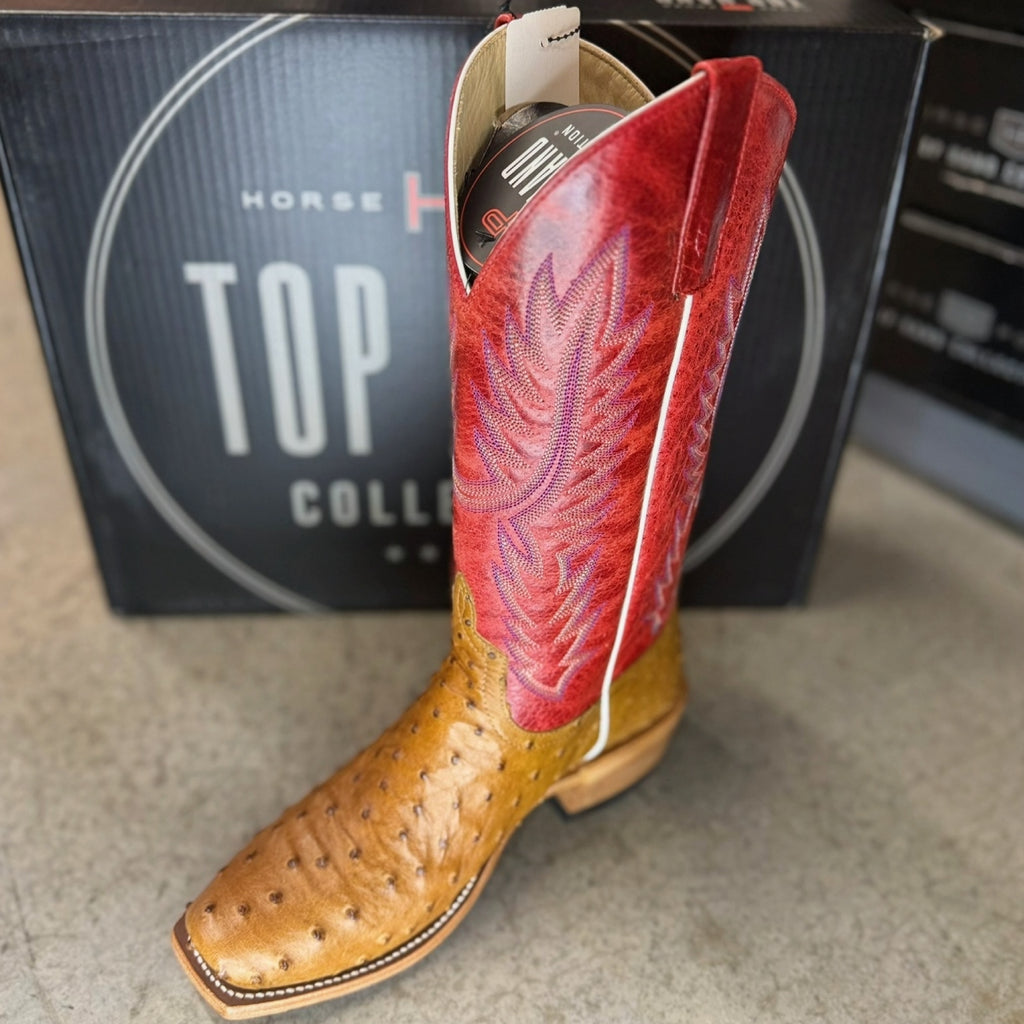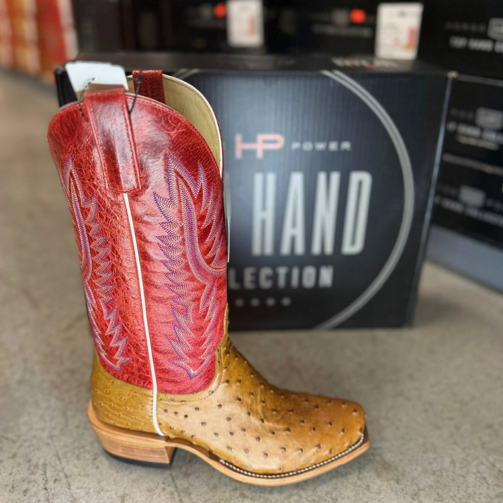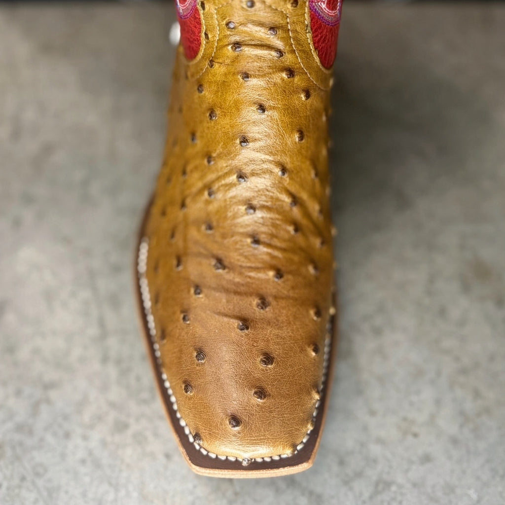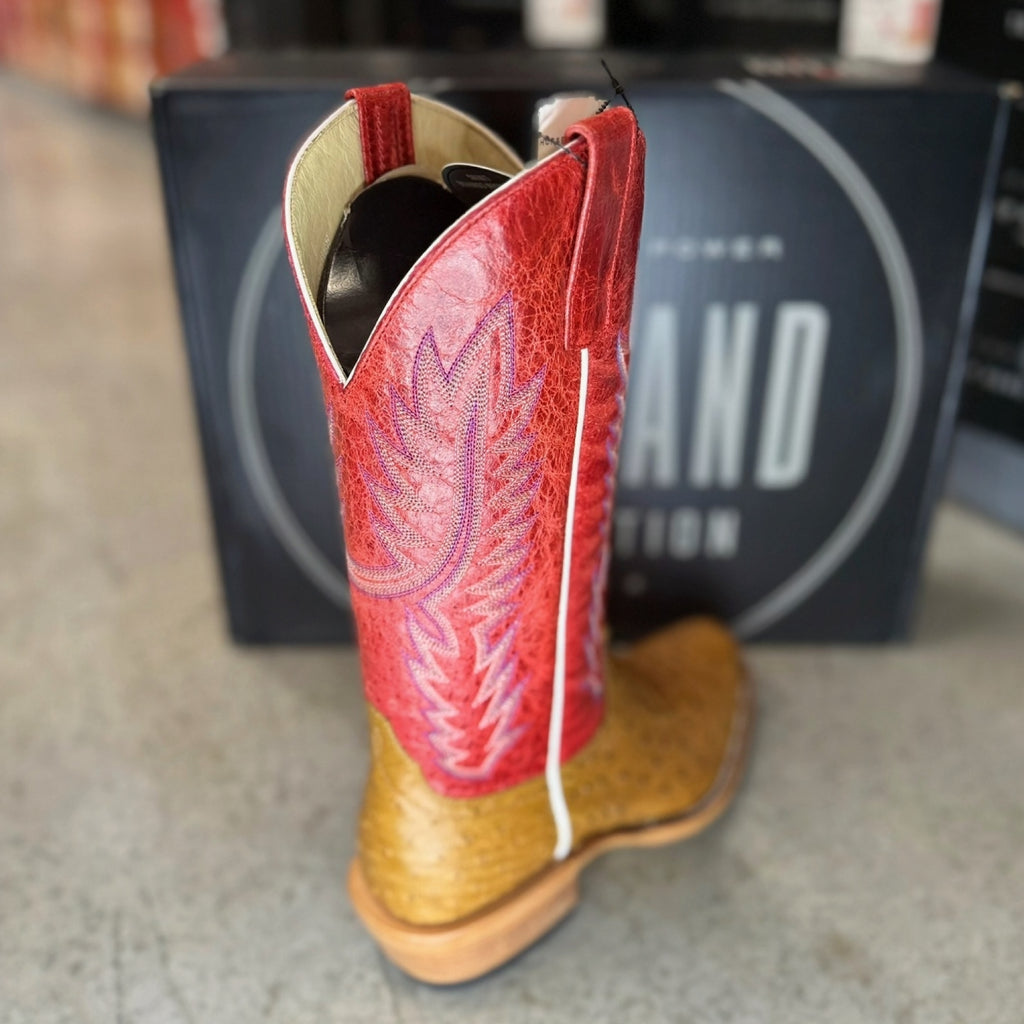 Horse Power By Anderson Bean Men's Boots - Top Hand Collection - Antique Saddle Full Quill Ostrich / Red Sinsation