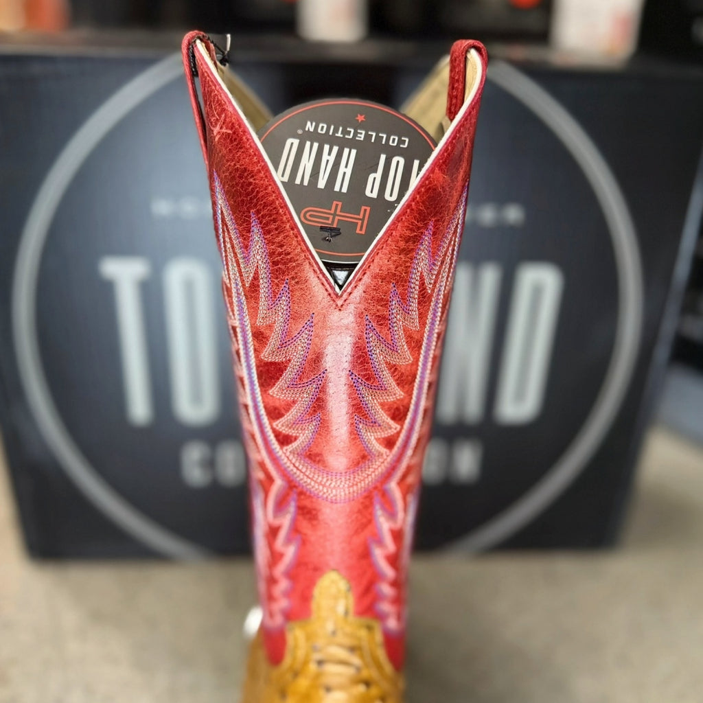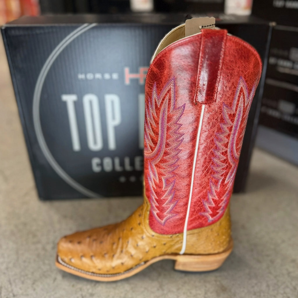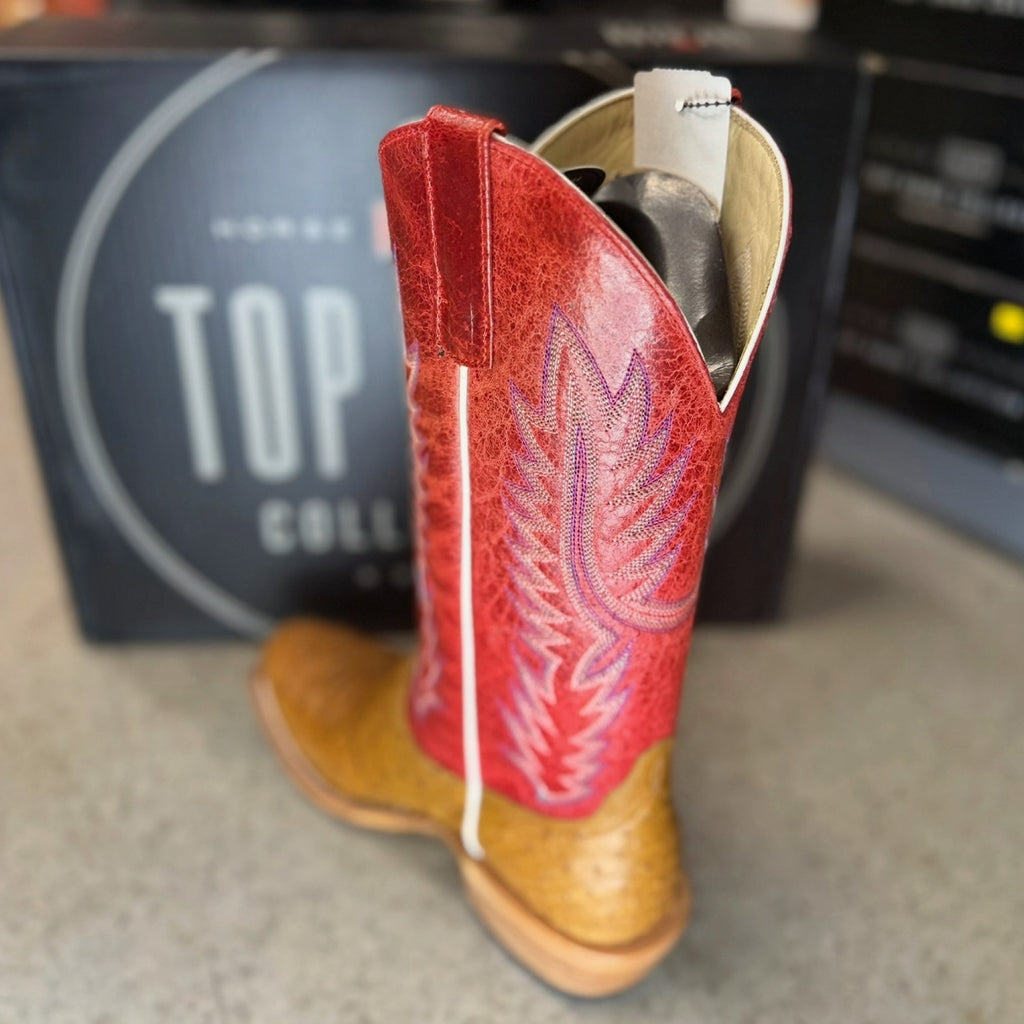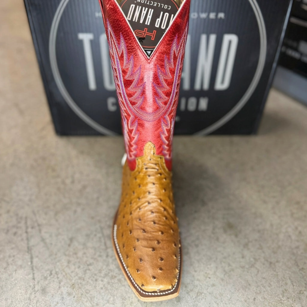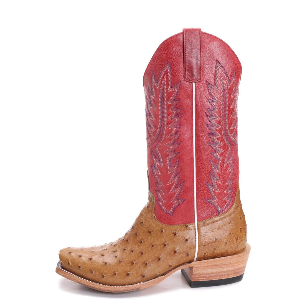 Horse Power By Anderson Bean Men's Boots - Top Hand Collection - Antique Saddle Full Quill Ostrich / Red Sinsation