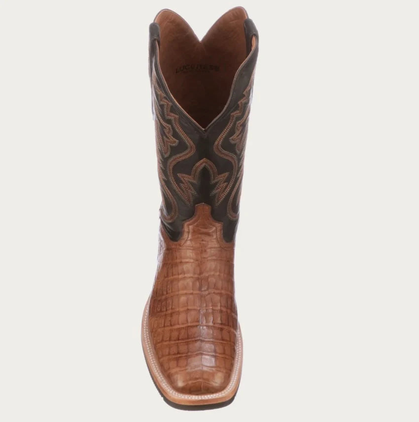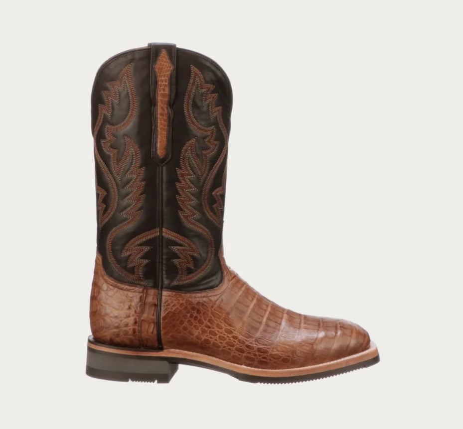 It takes more than a good idea to turn a tough day into an easy one. It takes the Lucchese Performance Collection - innovative, elevated, and rugged. Rowdy Caiman is at the forefront of innovation and aids those who work hard and live wild. This utilitarian silhouette offers an oil and slip-resistant outsole and grooves allowing mud and muck release, thoughtfully crafted for the worst conditions. Whether it's on horseback, at a construction site, or an evening stroll, the Rowdy Caiman Barn Boot will get the job done in style and comfort.