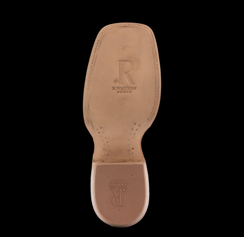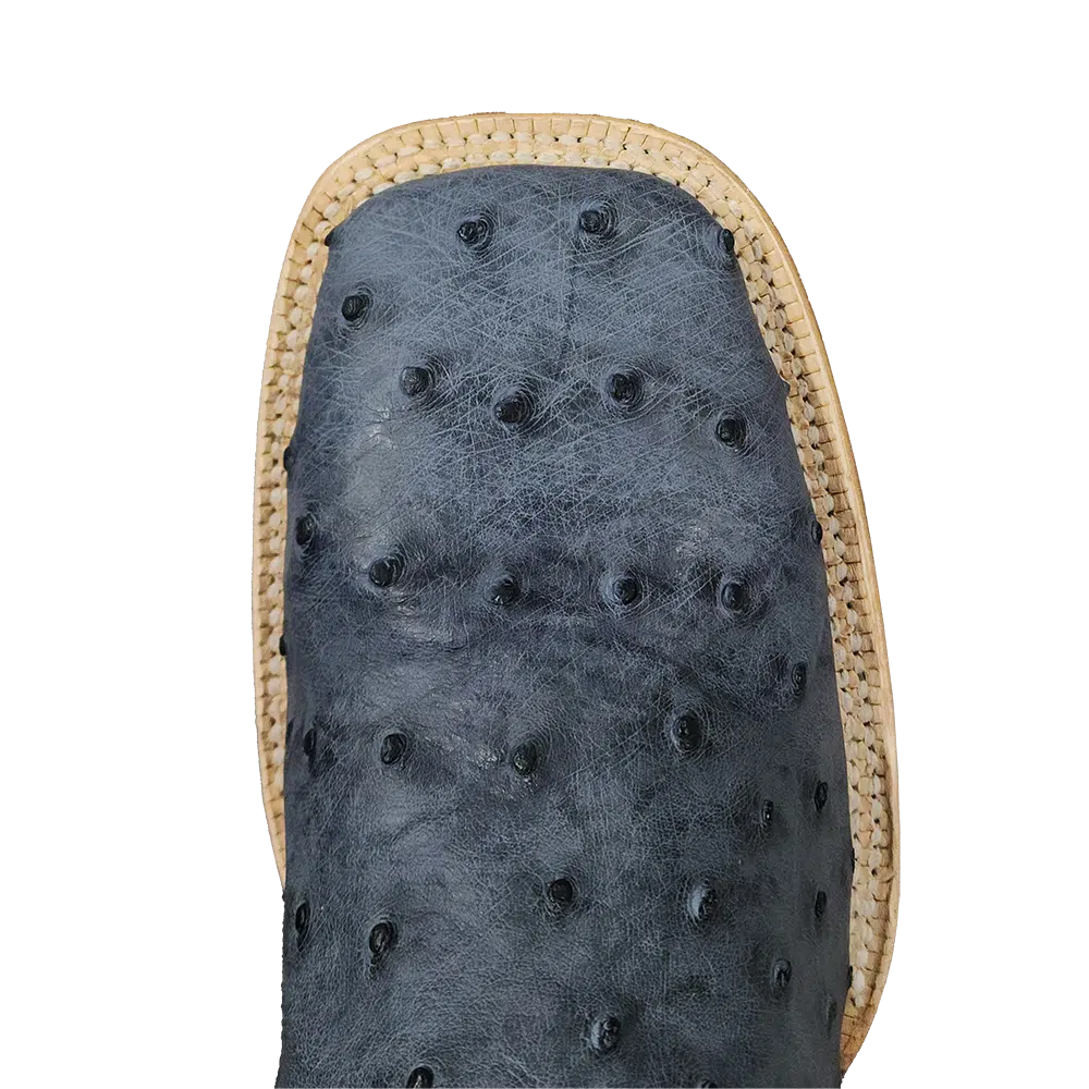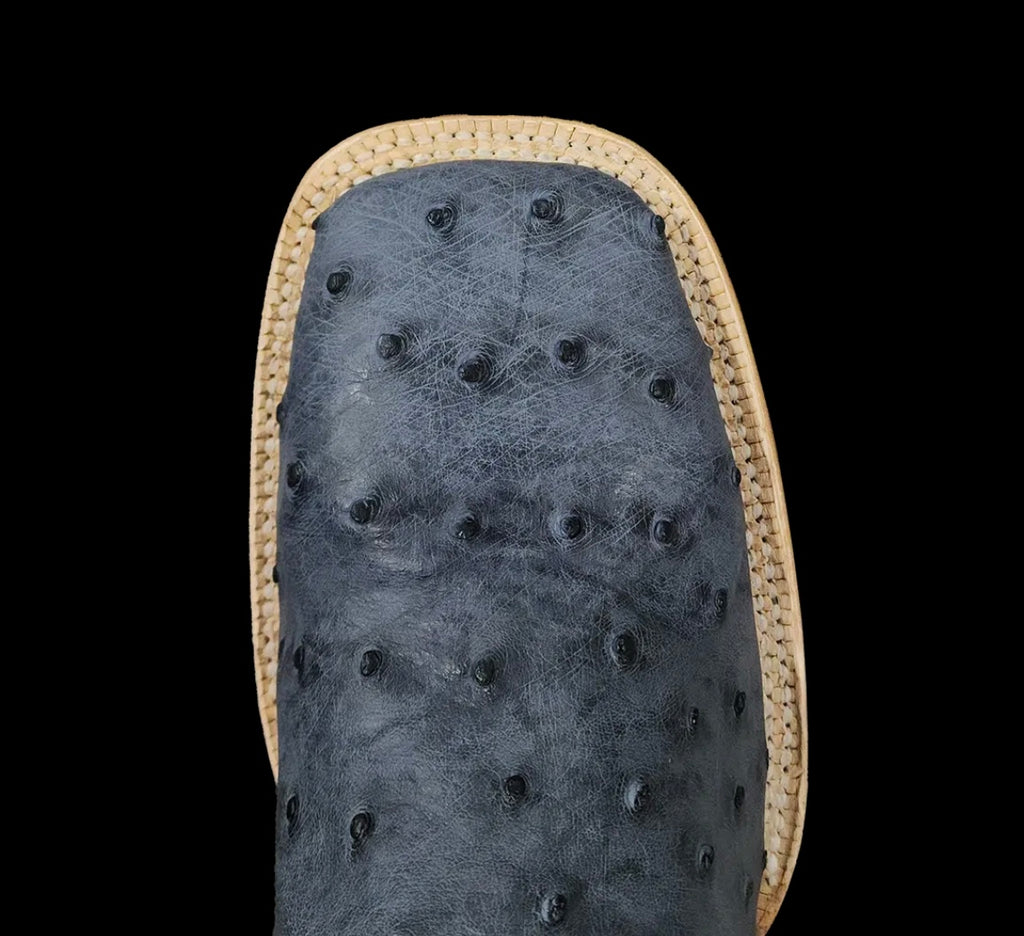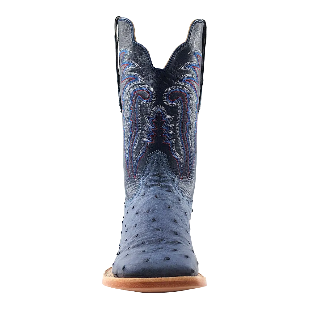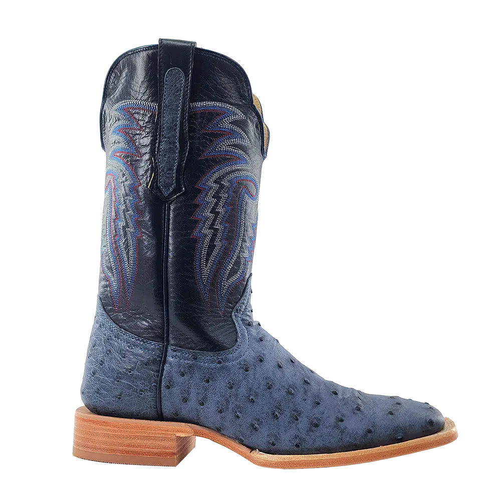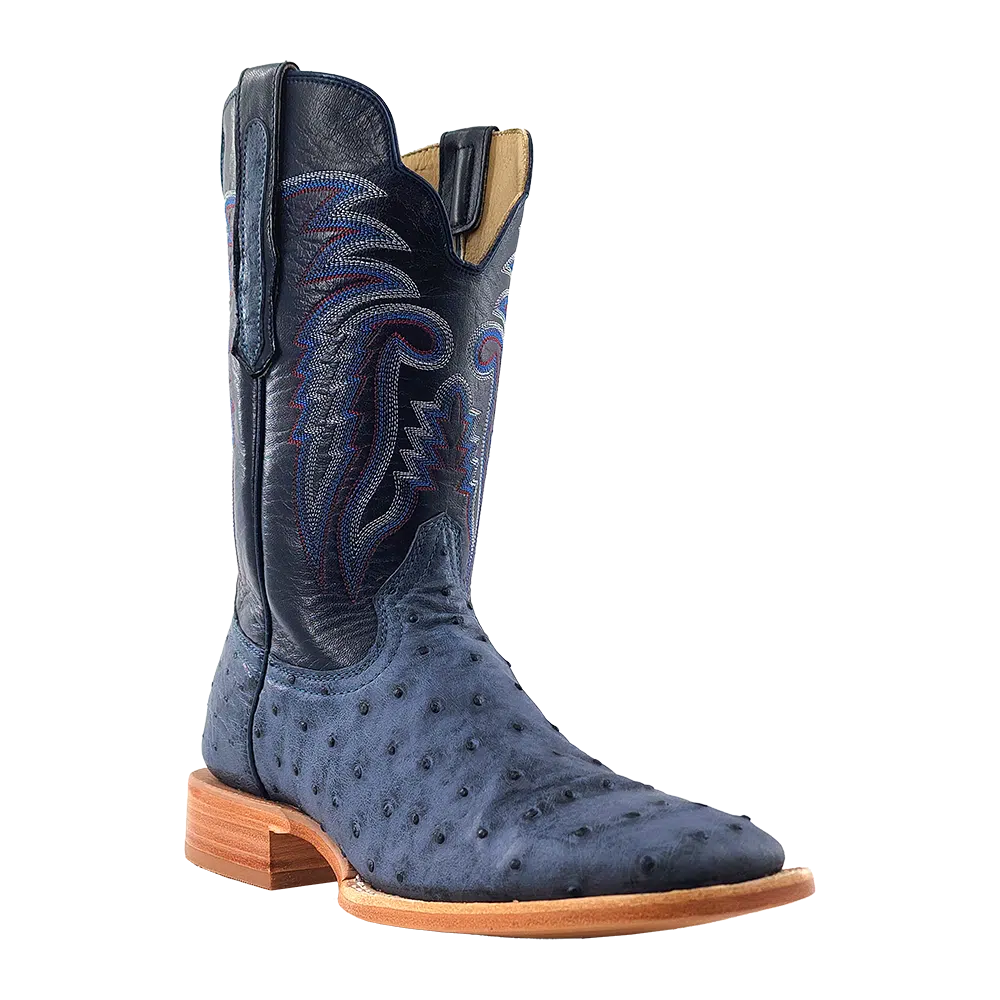 R. Watson presents these American blue jean full quill ostrich and navy goat exotic western boots. These boots have a 10 row stitch pattern, R. Watson comfort system, all leather stacked heel, counters, solid steel shank, and 10 iron outsole. 11″ total in height.