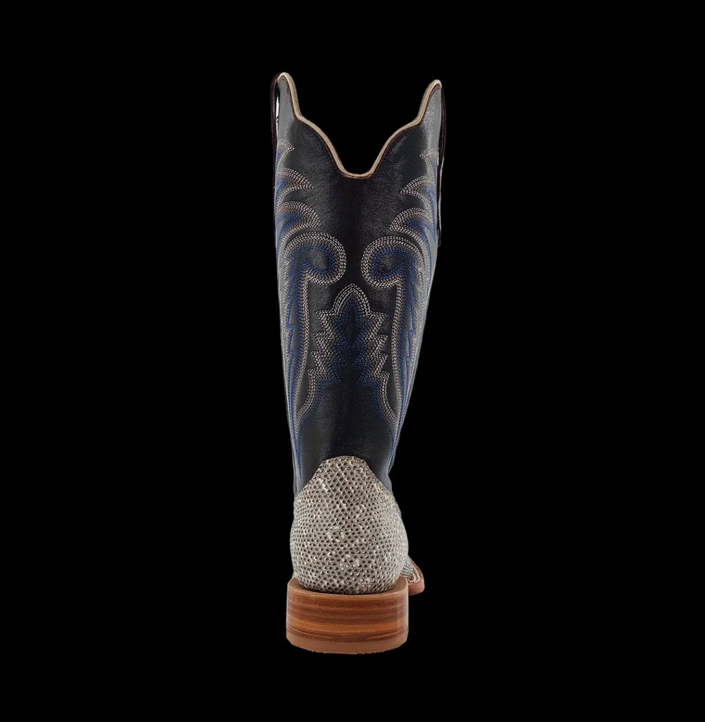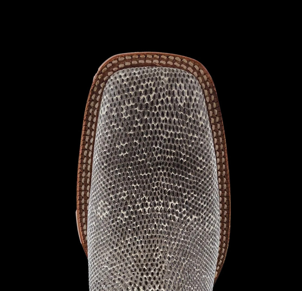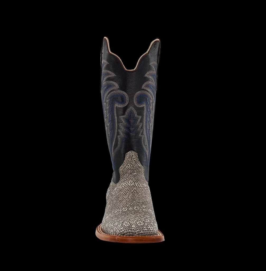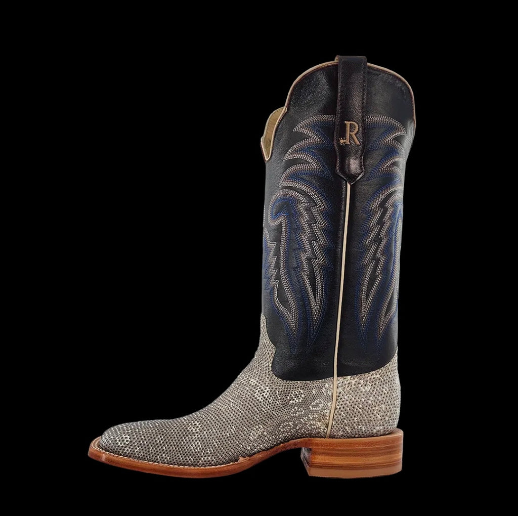 R. Watson presents these natural ring lizard and chocolate cow exotic western boots. These boots have a 10 row stitch pattern, R. Watson comfort system, all leather stacked heel, counters, solid steel shank, and 10 iron outsole. 13″ total in height.