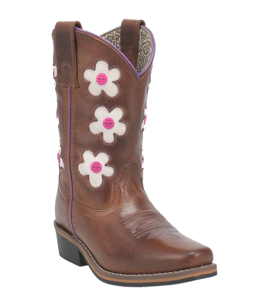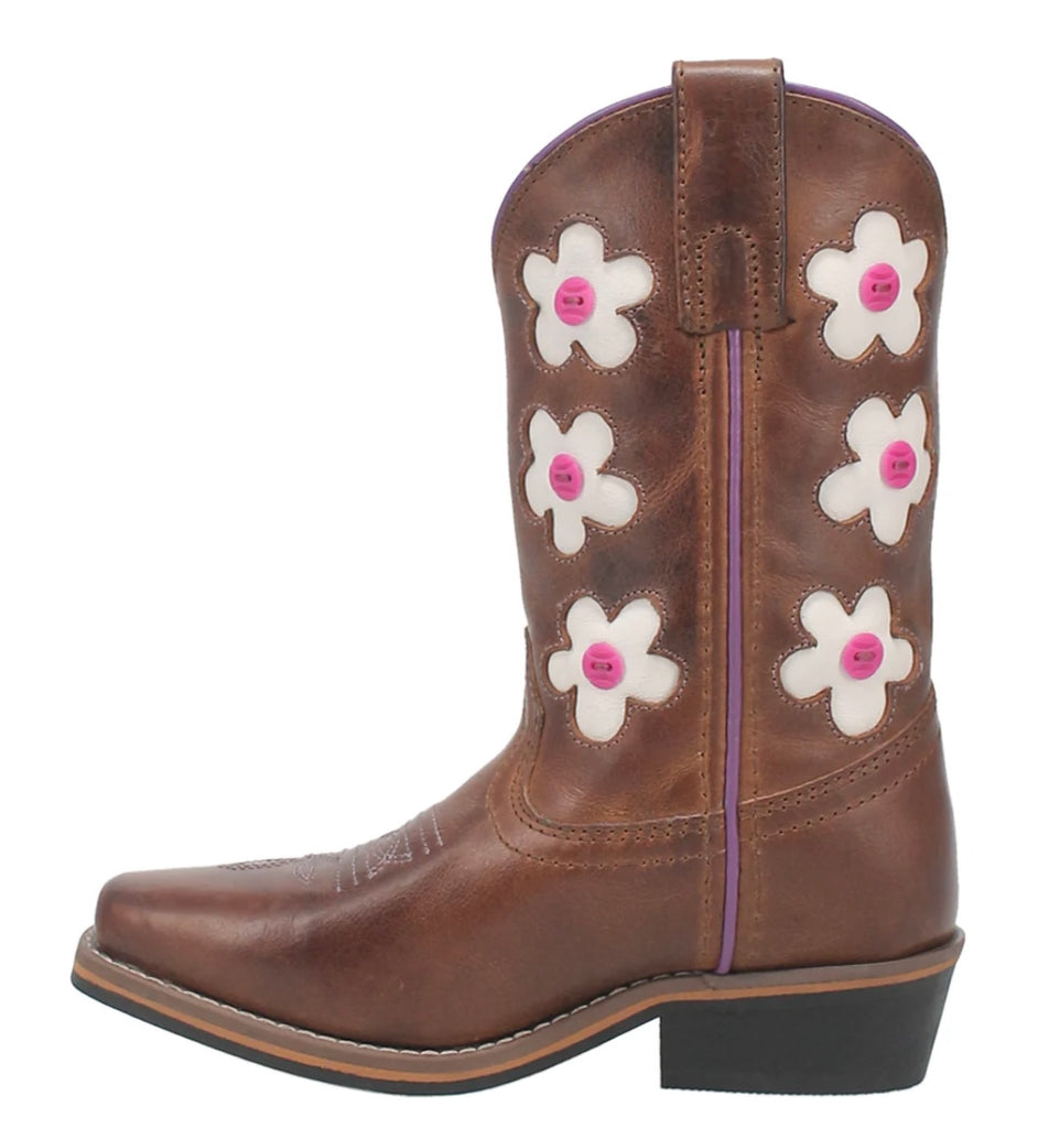 For a boot that’s just as fun and spirited as a cowgirl in the making, the Giselle from Dan Post Kids has it all. The Giselle features new UV Activated Color Changing Underlays. Wear them out in the sun and watch the white flowers transform to a purple hue. The Giselle also comes with a cowboy square toe, cowboy heel and cushion comfort insole.