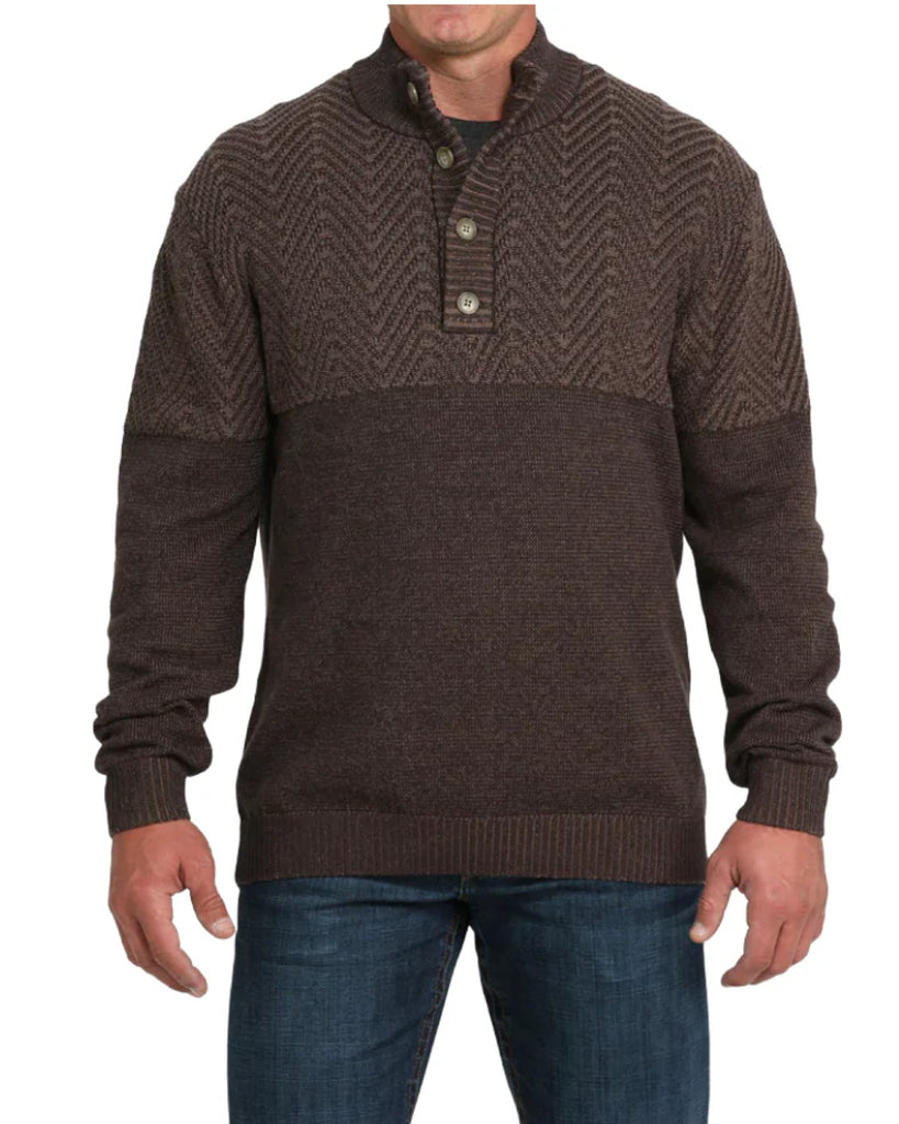 Cinch Men's Brown Button Herringbone Knit Sweater