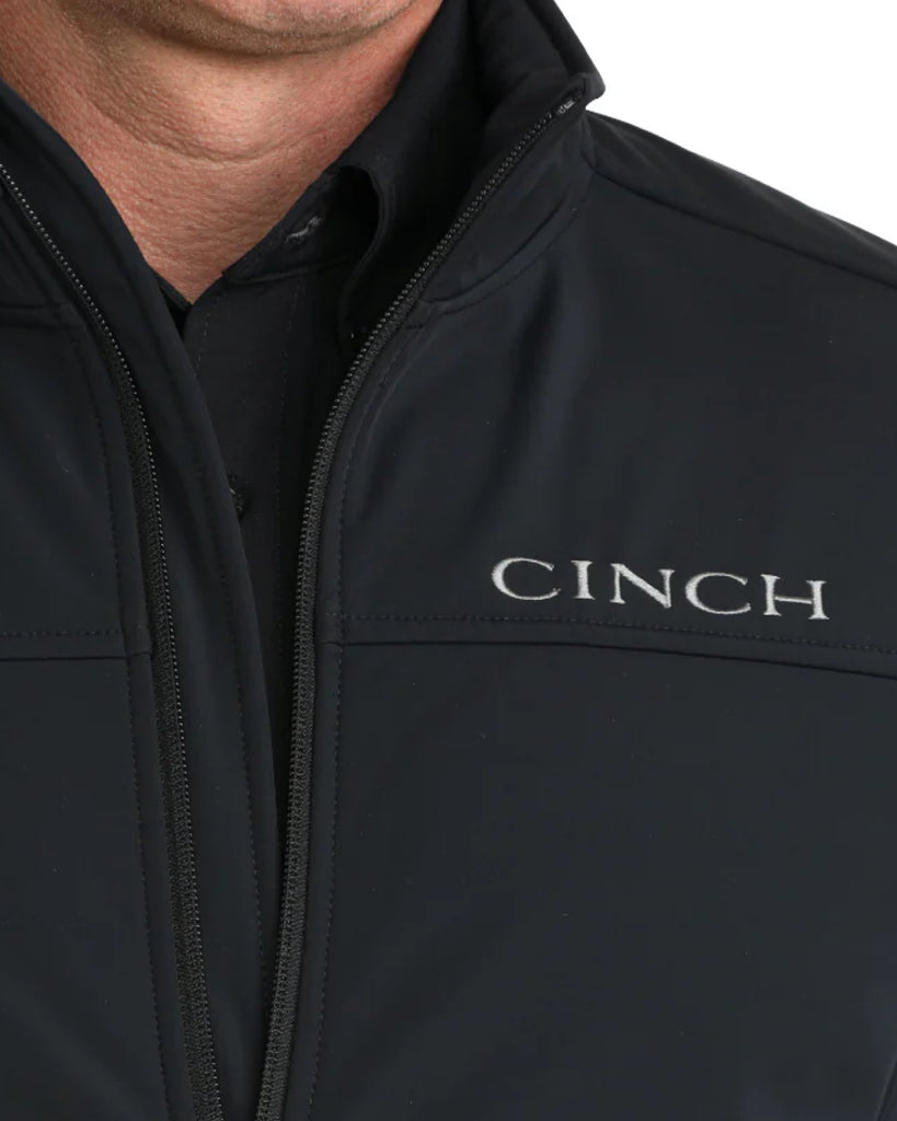 This men's windproof jacket features a full-zip front, long sleeves, and practical hip pockets. Made from a blend of 83% nylon and 17% spandex, it offers water resistance and durability. The jacket showcases the Cinch logo on the chest and is designed to provide protection against wind while maintaining comfort.
