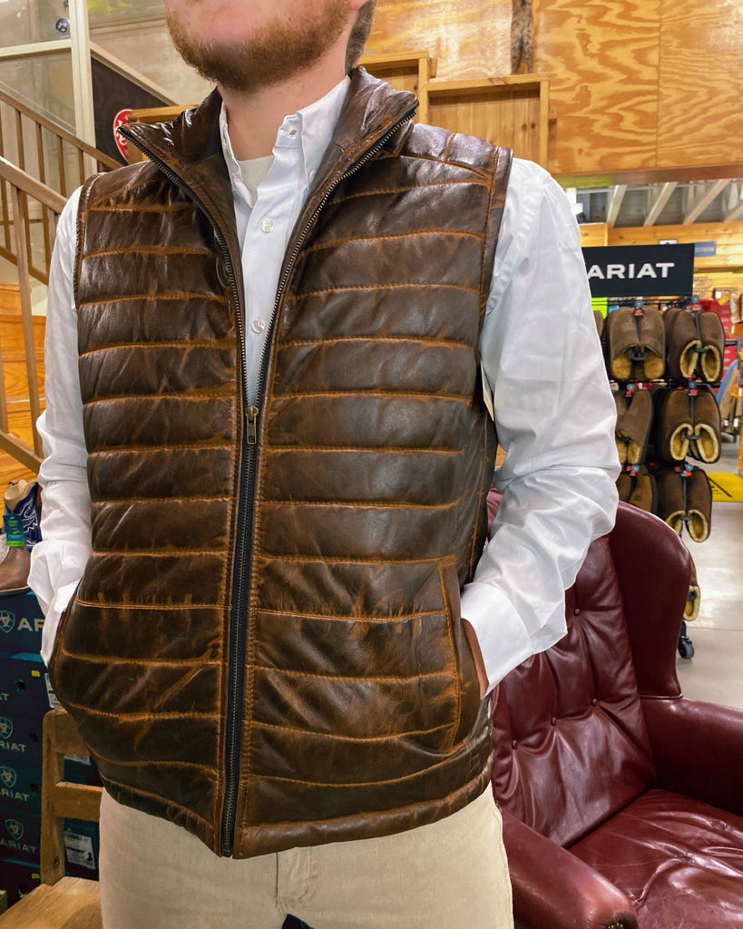 • This rugged yet refined vest combines blended warmth style with modern comfort. made from quilted leather for warmth and texture, it features a.