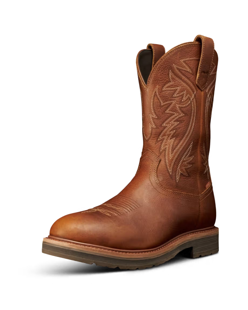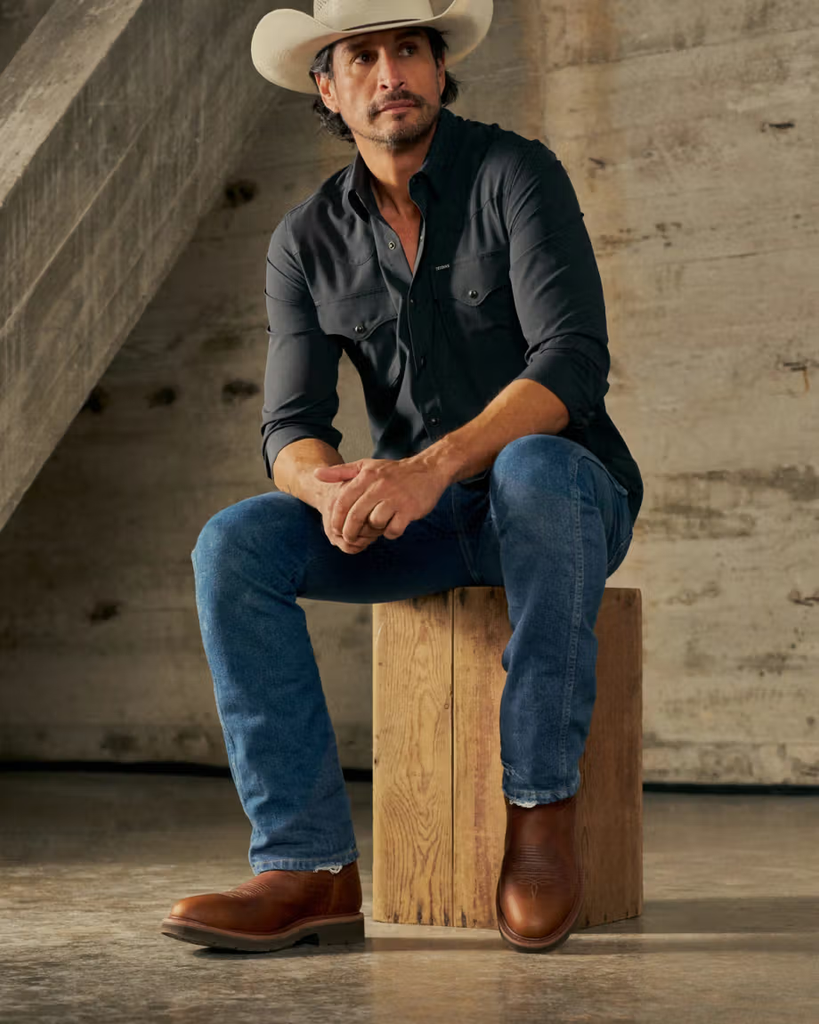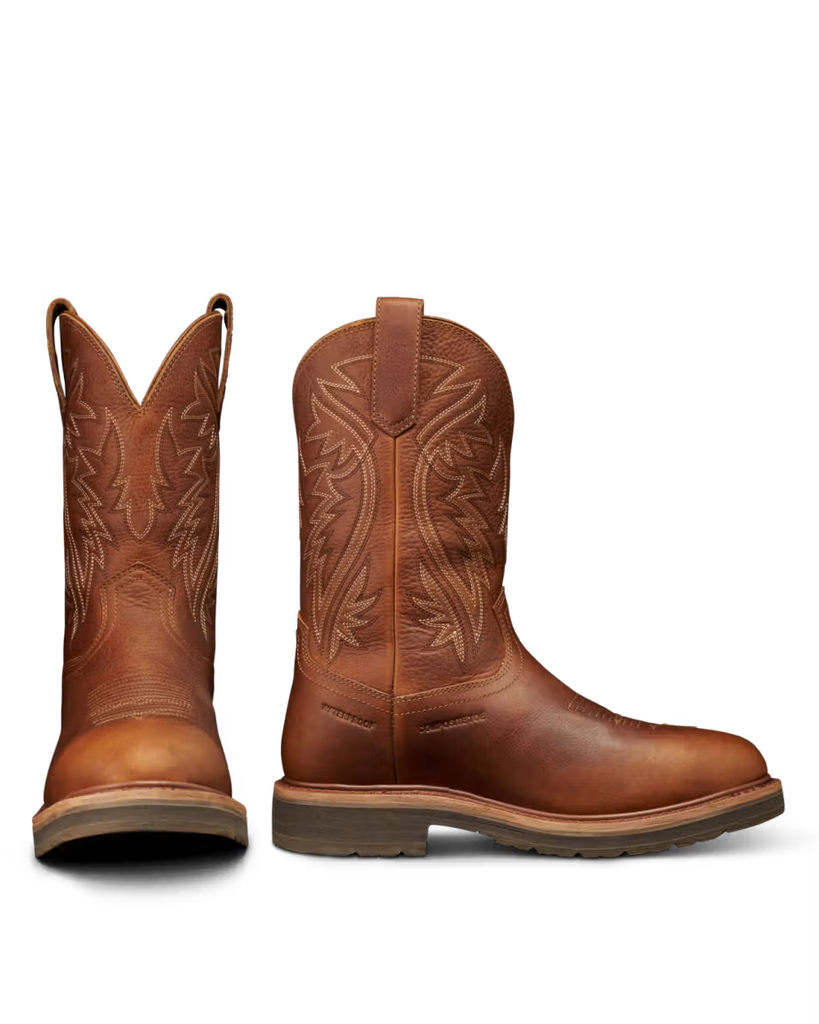 Tough, dependable, and undeniably Western — this round toe boot is built for long days on the jobsite and hard-won weekends. A dual-density cushioned outsole, our energy-returning Total Energy Command (TEC) insole system, and a removable footbed keep you moving all day. Its deep-lugged MuckOFF Tread repels debris, is oil- and slip-resistant, and breathable treated leathers keep your feet dry. Meets ASTM standards for safety toe (ASTM F2413-24 I/C), slip-resistance (ASTM F2413-24 SR), and electrical hazard protection (ASTM F2413-24 EH).
