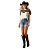 Western yoke contrast gives this cropped tee a bold, standout look. Easy to style with your favorite jeans or denim shorts, it’s a fun spin on a casual staple.
