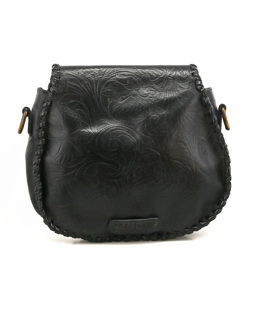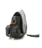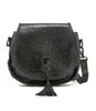 • Saddle bag shaped crossbody with playful leather tassel threaded through a metal grommet