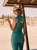 This Lainey Wilson x Wrangler® Turquoise Denim Vest is road trip ready. It’s crafted from cotton with just a hint of stretch for extra comfort and a turquoise-colored wash that rises to every occasion. It comes with two patch front pockets with the signature ‘W’ stitching and golden embroidered stars across the yokes. On the back, a beautiful chain-stitched horseshoe surrounded by stars will make your outfit pop. To complete the look, shiny copper hardware adds some glam, and the country music star’s initials are embroidered along the hem.