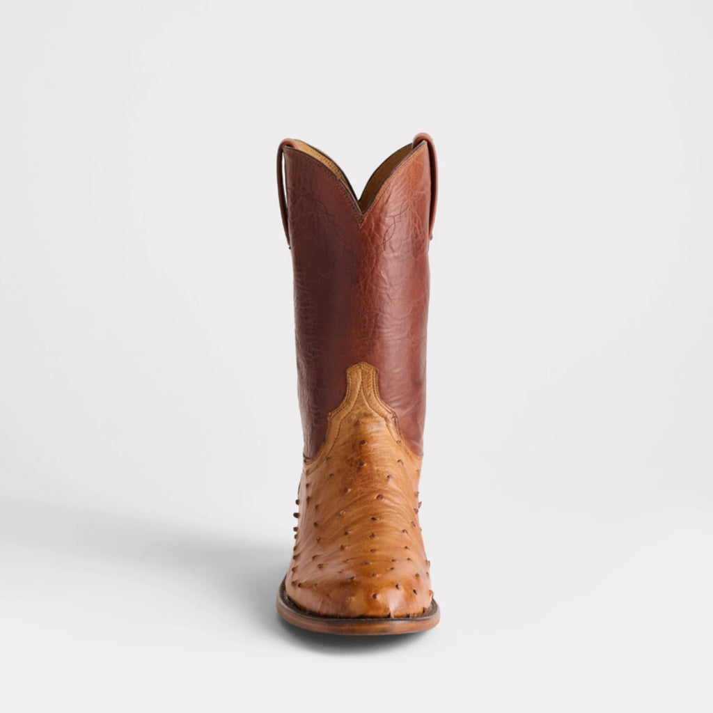 Our No. 1-selling exotic has a prized aesthetic suitable for board meetings and special occasions while also being tough enough for riding and rigorous outdoor activity. Ostrich is supple and molds nicely to the foot. Maximizing quill pattern is something we do more thoughtfully than any other bootmaker. When fit perfectly, full-quill ostrich makes the ultimate cowboy boot.
