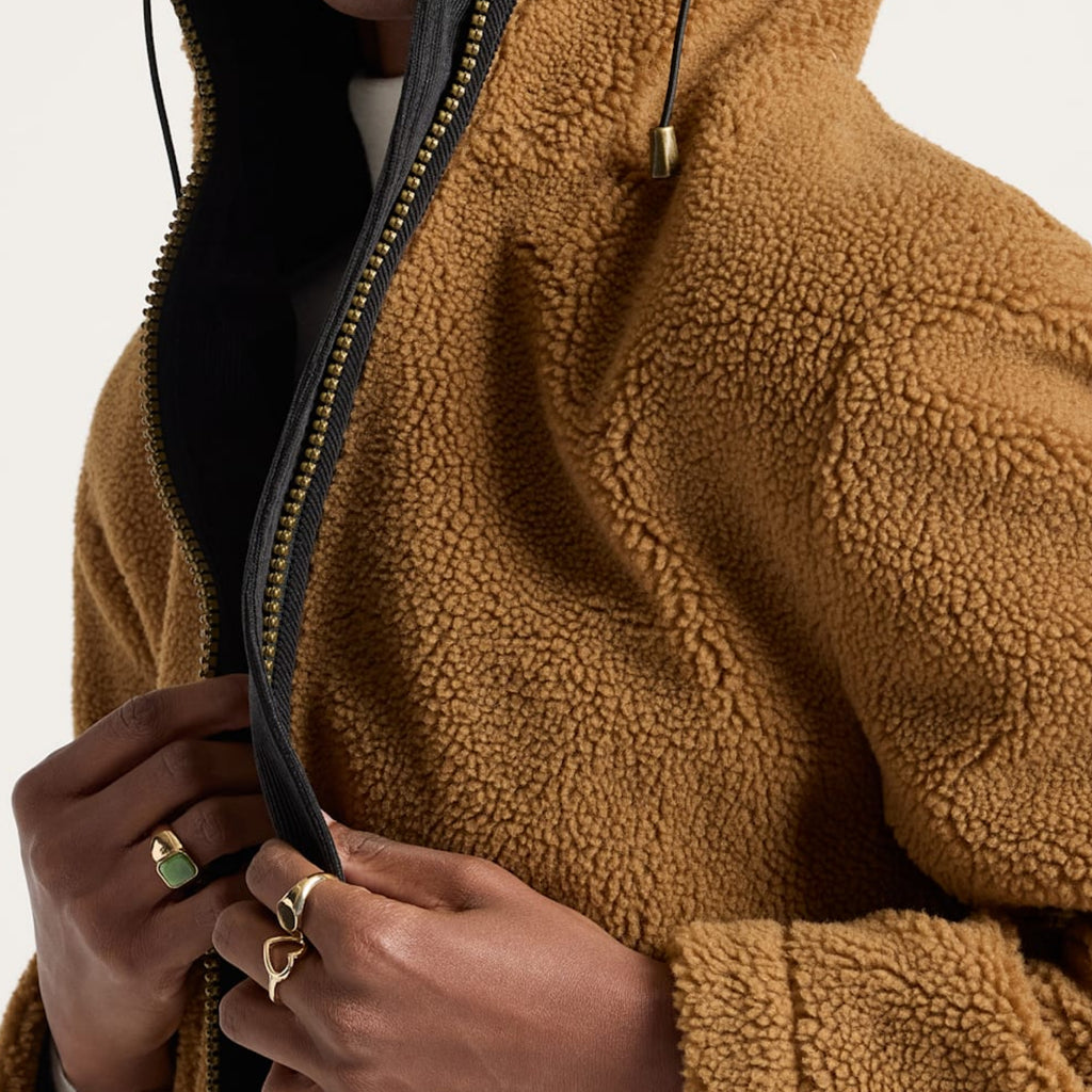 This fleece bomber jacket showcases Pendleton's iconic Chief Joseph Autumn Star pattern, bringing vibrant heritage style to a timeless silhouette. Corduroy trim on the center front and hood adds texture and durability, while a breathable muslin body lining ensures comfort. Designed with adjustable drawcords at the hood and angled zipper welt pockets, it's a versatile cold-weather layer finished with a signature logo patch.