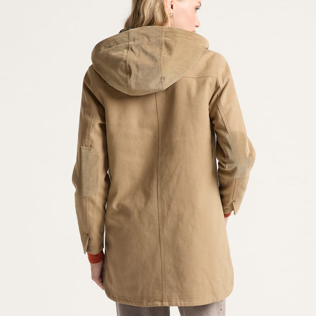 Cotton canvas parka designed for warmth, comfort, and classic Pendleton style. Features a classic fit, with a zip front with snap placket, light fill for cold days, corduroy trim on the hood, elbow patches and pocket welts. Upper back and hood are lined in cozy Harding-patterned fleece for signature heritage appeal, with interior security pockets, a drawcord hood, high-low hem, and authentic logo patch.
