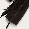 Traditionally used on buckskin garments to help shed rain, fringe is western style at its best—a functional detail that just happens to look fantastic. The Suede Fringe Motorcycle Jacket is crafted from high-quality suede leather and cut in a bold, statement-making silhouette. It features an oversized notch collar, asymmetrical front zip closure, and a wide waistband, with angled front zip pockets and zip closures at the back of the sleeves. Cascading fringe along the back yoke and down the sleeves add movement and unmistakable attitude.