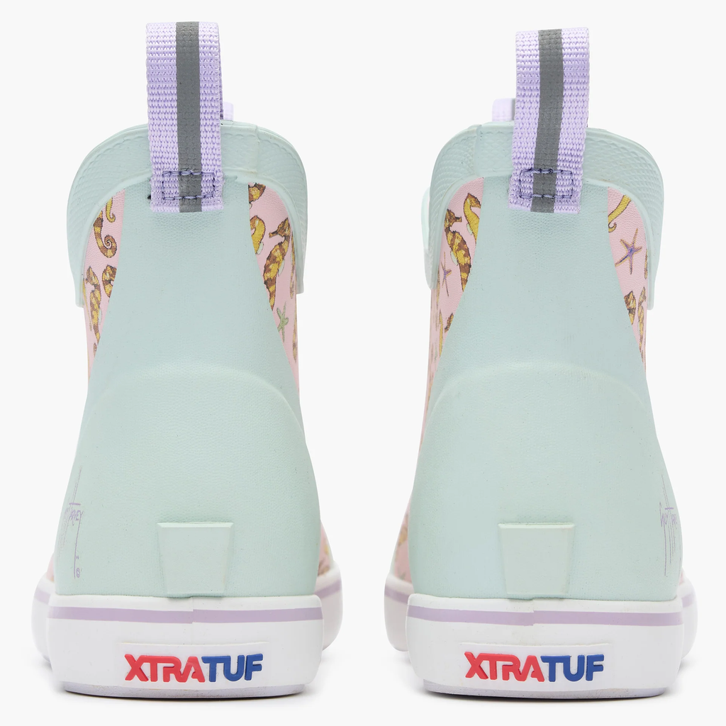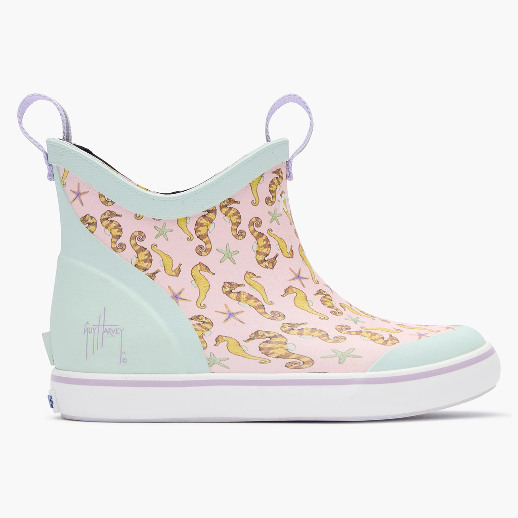 The Ankle Deck Boot is one of XTRATUF’s most iconic silhouettes due to its versatile design and Alaska proven performance. Now available in popular kids sizes for the toughest youth out there. The Kids ADB is the first slip resistant, non-marking rubber boot on the market designed specifically for young anglers. This style features Guy Harvey's original Seahorse print.