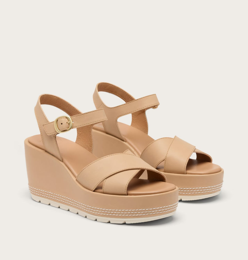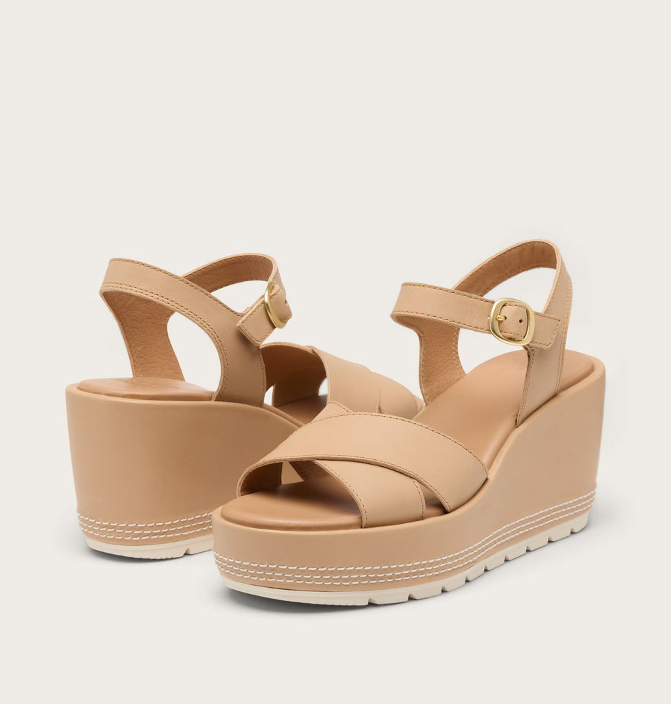 Light and luxurious, this modern, strappy wedge has the perfect blend of fun, fashion, and function. Take on the town, supported by a cushioned EVA footbed, molded Evertread™ rubber sole, and light raffia-wrapped wedge heel.