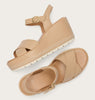 • UPPER: Available in smooth full grain leather (CW 011,191, 246) or suede (CW 637). Adjustable ankle strap with buckle closure. Synthetic lining.;INSOLE: Cushioned EVA footbed engineered for underfoot comfort. Synthetic topcover.;MIDSOLE: Raffia wrapped (CW 191 &637) or synthetic wrap (CW 010 & 246) wedge heel.;OUTSOLE: Molded EVERTREAD™ rubber.