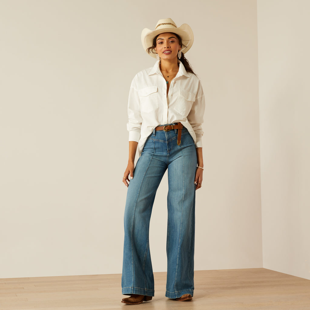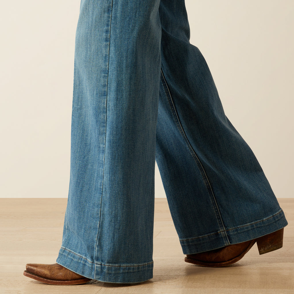 Relaxed from the high thigh and widens to a 25 ½" leg opening