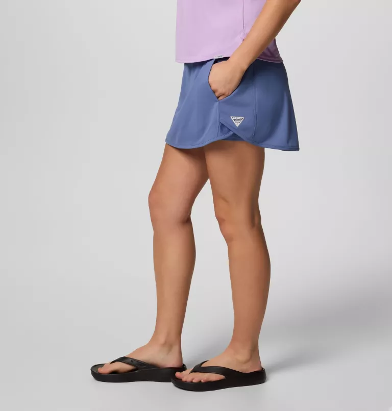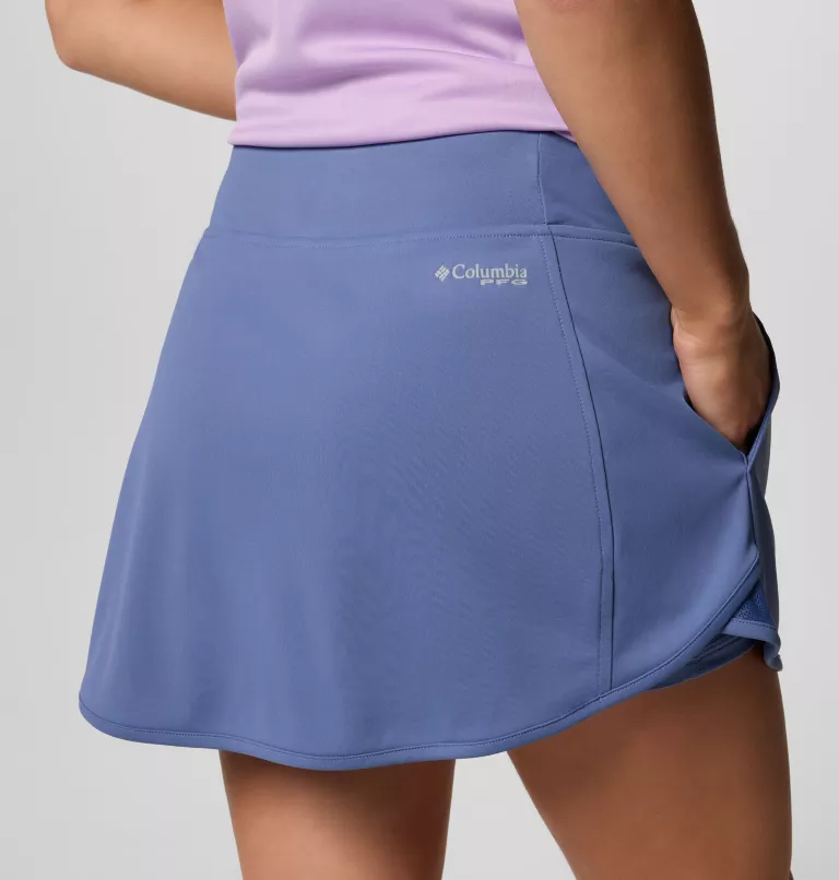 This skort protects you from UV-rays and wicks away sweat for beach days and beyond. Built-in shorts provide support, and a handy drop-in pocket holds your phone.