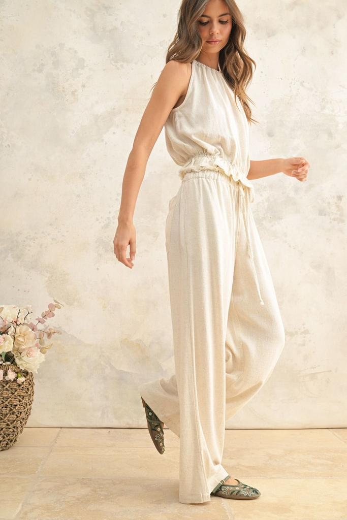 Oatmeal Linen Halter Top