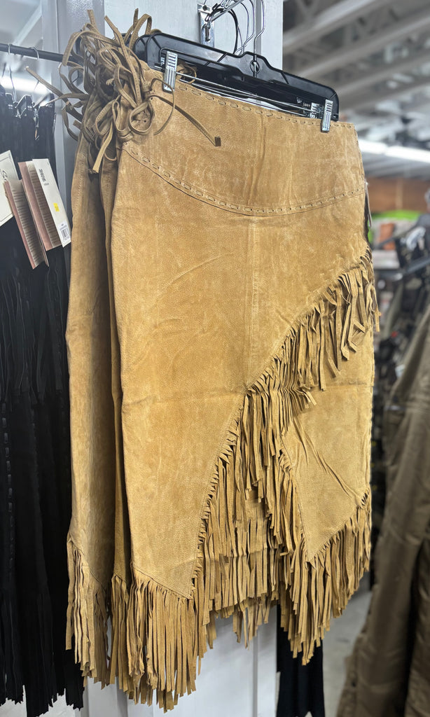 Scully Suede Leather High Rise Wrap Fringe Midi Skirt Ladies