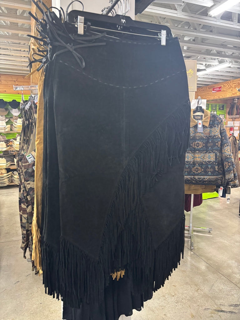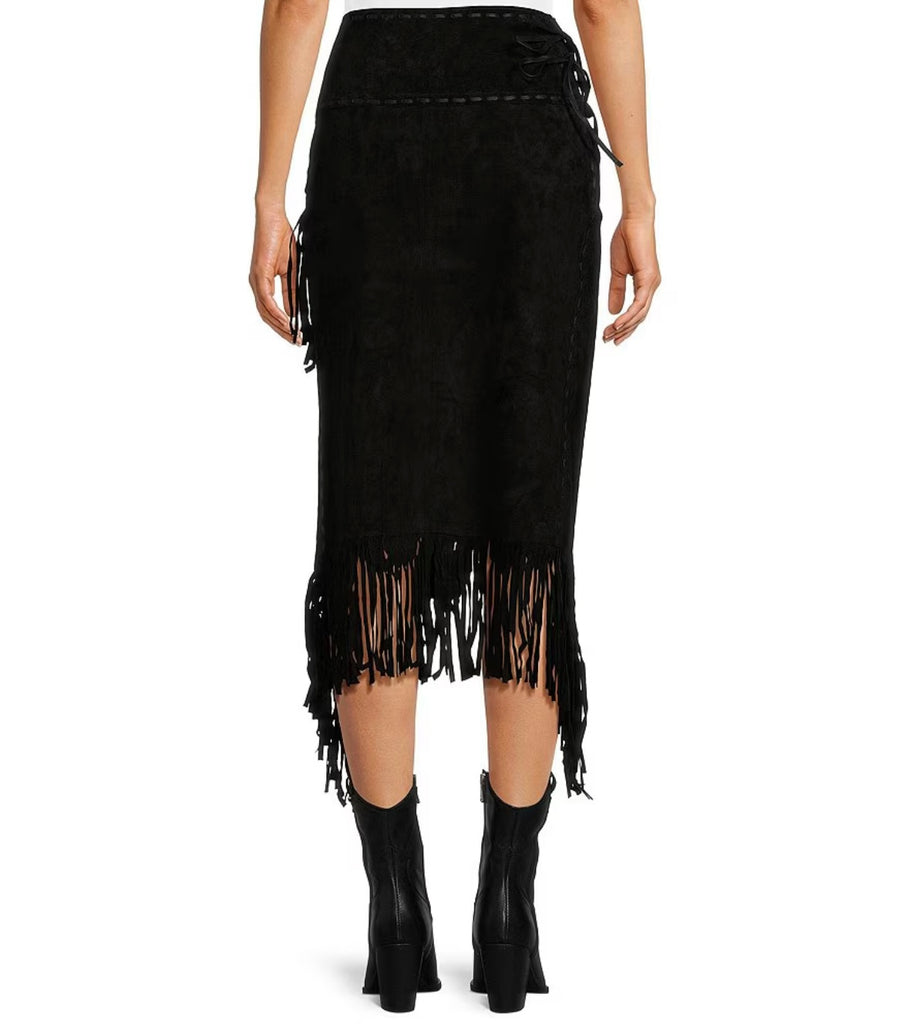 Scully Suede Leather High Rise Wrap Fringe Midi Skirt Ladies