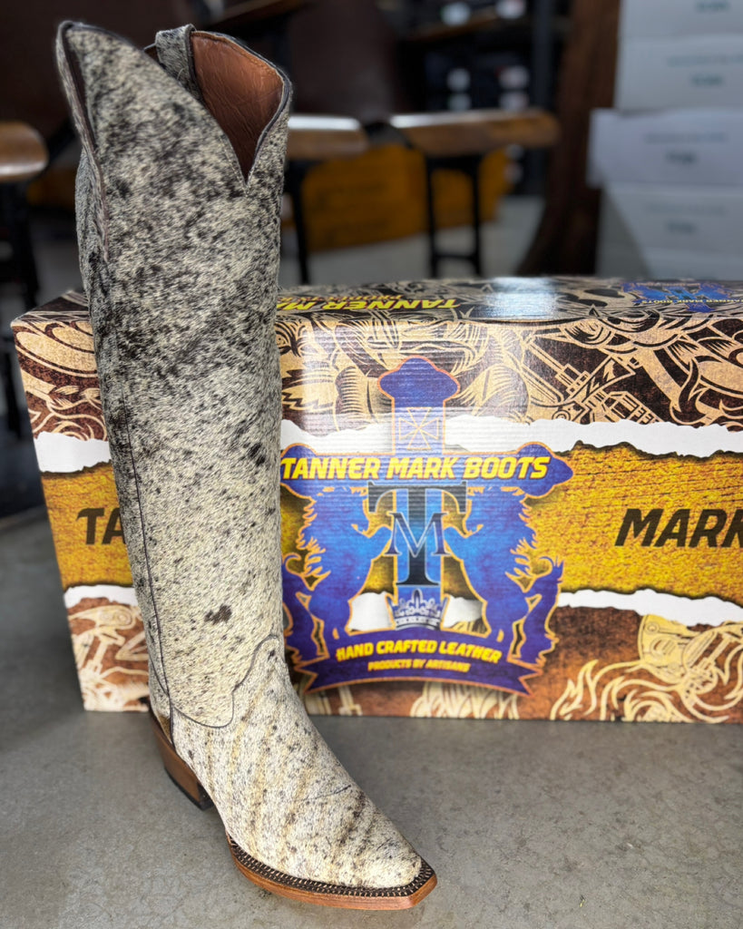 Each pair is crafted from a unique, natural hide. Because no two cows are identical, the spots, patches, colors, and textures will differ, ensuring that every pair of boots is one-of-a-kind.