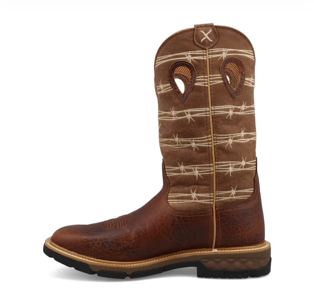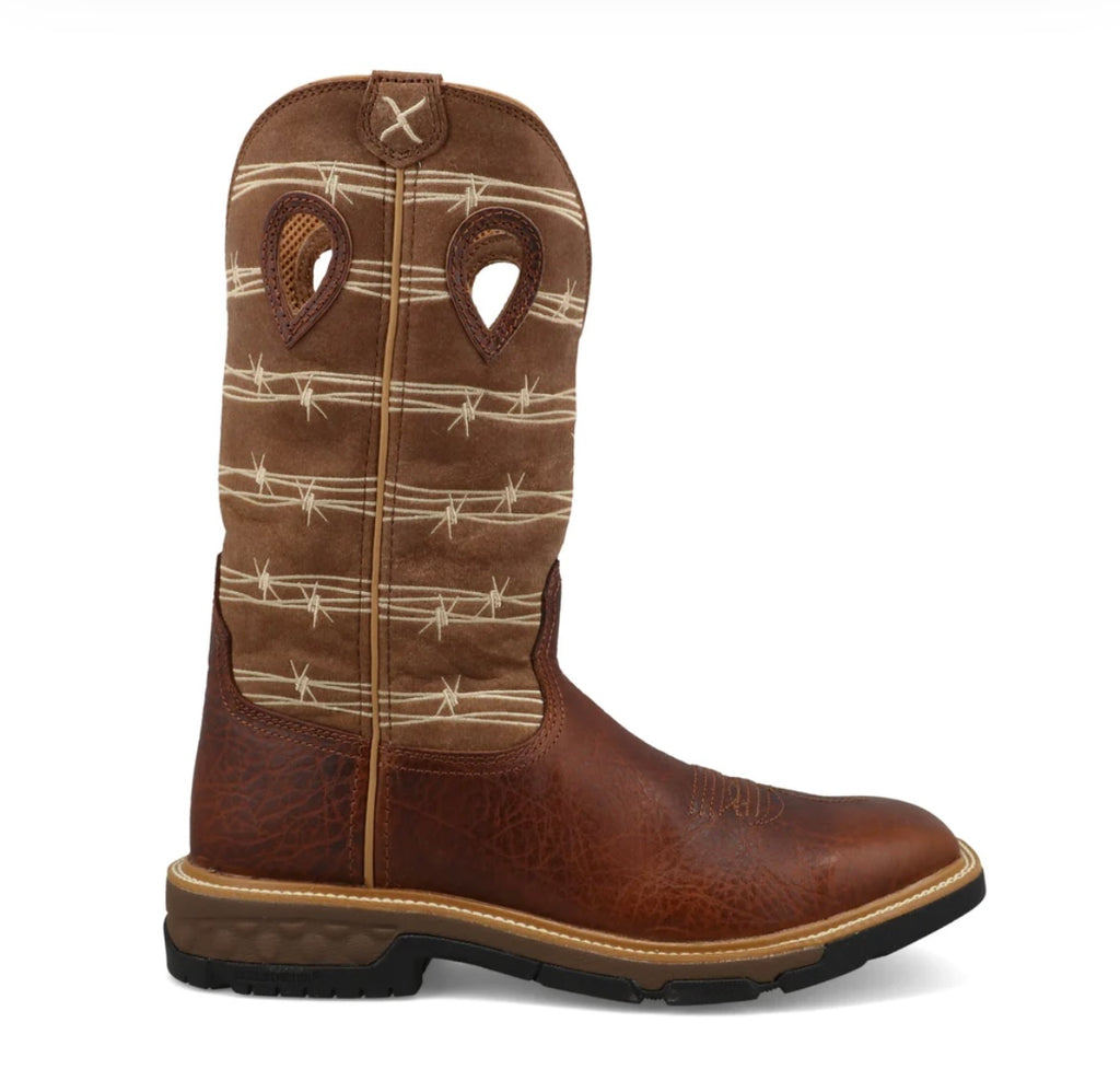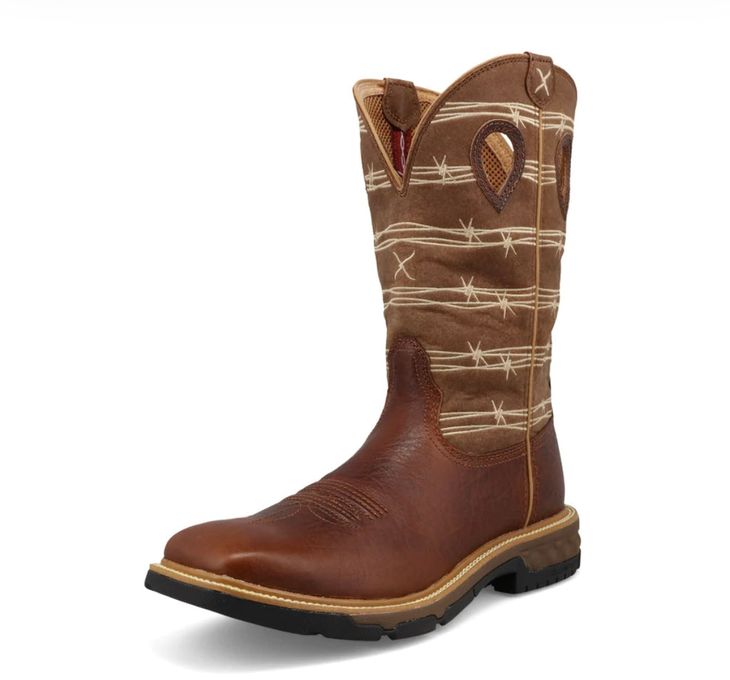 This Men's 12" Western Work Boot was made for all day comfort. Handcrafted in full-grain leather, this boot features an air-mesh lined shaft for improved breathability. For stability and durability, Twisted X® has combined a molasses-infused EVA midsole integrated with Twisted X® CellStretch® comfort technology and a nylon/glass fiber shank. The oil and slip resistant molded rubber outsole provides durability and improved traction for whatever your day may bring. Twisted X® Work footwear provides all the comfort, stability, and durability that you need to outperform any demanding work environment.