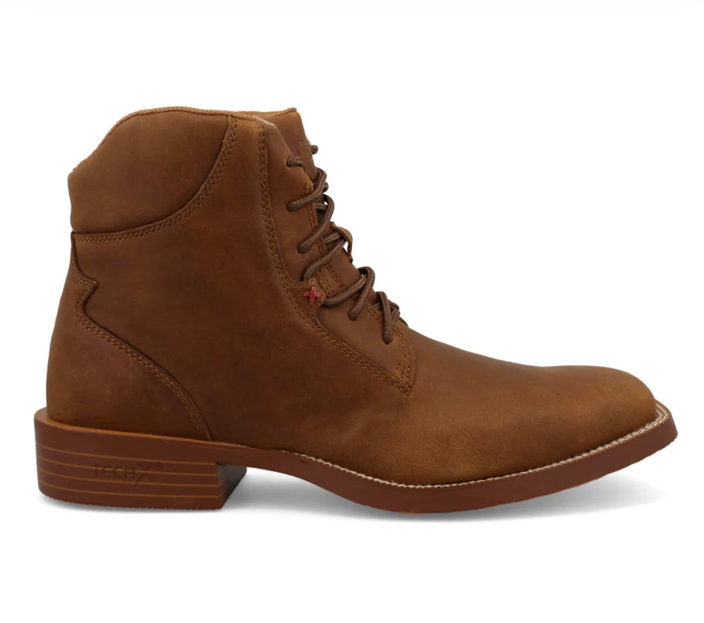 Stylish and comfortable, the 6" Tech X™ Lace Up Boot has it all. Crafted with leather upper and durable nylon laces, it's also equipped with CellStretch® Comfort Technology and a Blend85™ footbed with ecoTWEED™ Lining. The dual-stitched welt and integrated spur shelf come atop a rubber leather-look outsole with a 1.5" walking heel. So go ahead, hit the town in this casual cowboy boot.