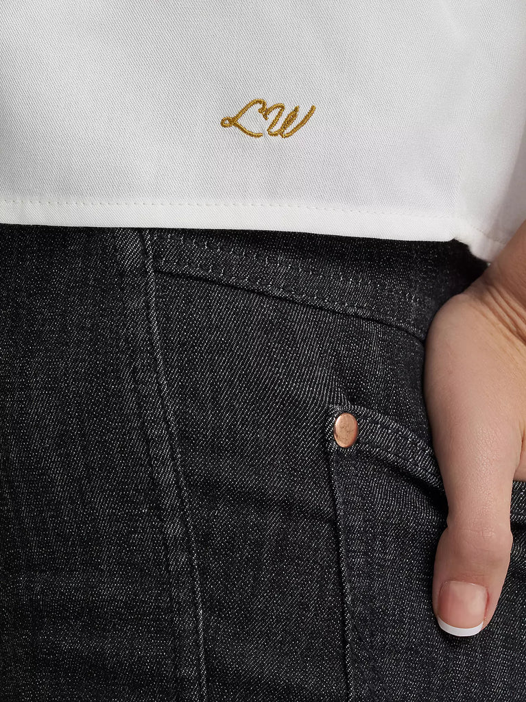 Blending laidback style with vintage cowgirl flair, the Lainey Wilson x Wrangler® Camp Shirt will be one you’re wearing on repeat. It’s woven from a soft fabric that’s perfect for warm days, with a slightly cropped silhouette offering a boxy, effortless look. It comes with an open lapel collar, pearl snaps, piped trim along the pointed yokes, and vintage-inspired artwork featuring rough stock riders in action. You’ll find Lainey’s embroidered initials at the hem, nodding to just how hands-on she was in creating each collection piece.