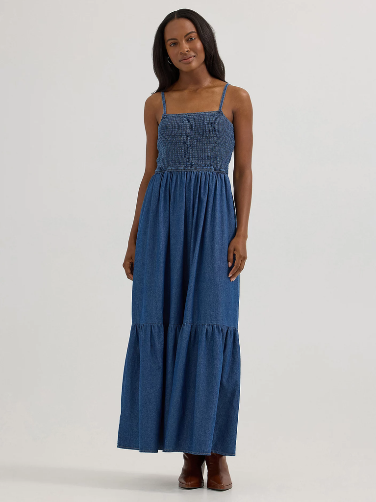 Wrangler Smocked Bodice Denim Maxi Dress