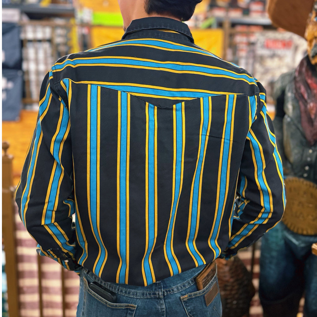 A classic reimagined for modern cowboys. The Men's Wrangler Retro® Premium Stripe Western Snap rises to every occasion. It’s made of cotton for comfort and easy care. It comes with that ‘90s-inspired design full of bold stripes and eye-catching colors to make sure you stand out no matter where you go. It also has all the iconic details you know and want, including one point western yokes at the front and back, snap flap chest pockets with our ‘W’ stitching, signature chambray trim inside the cuffs and collar, and pearl snaps. Plus, it features a modern fit that still offers plenty of room for layering.