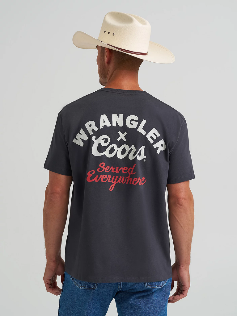 It’s 5 ‘o’ clock somewhere. This Wrangler® x Coors® Served Everywhere T-Shirt will give your daily rotation the refresh it deserves. Combining the Western heritage of your favorite names in beer and denim, this classic crewneck features retro-inspired graphics from front to back with collaboration co-branding to toast the moment. It’s cut with a relaxed fit for a roomier look and feel. Plus, it’s crafted from cotton to keep you comfortable no matter where the ride of life takes you.