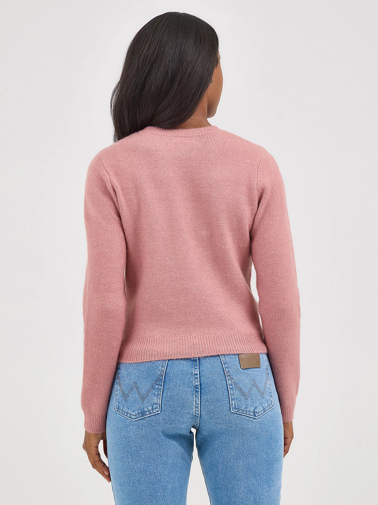 With sweater weather coming up, our Women's Wrangler Retro® Horseshoe Sweater is sure to be your lucky charm. It's crafted from a buttery soft fabric blend with just a hint of stretch and an eyelash intarsia horseshoe pattern. It comes with a slightly fitted silhouette that will look great with anything high-rise. Plus, the soft blush pink hue makes this sweater perfect for holiday parties, seasonal photoshoots, and so much more.