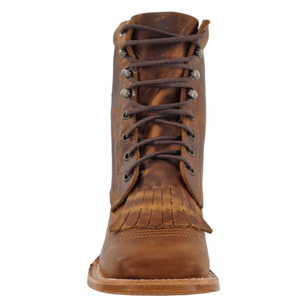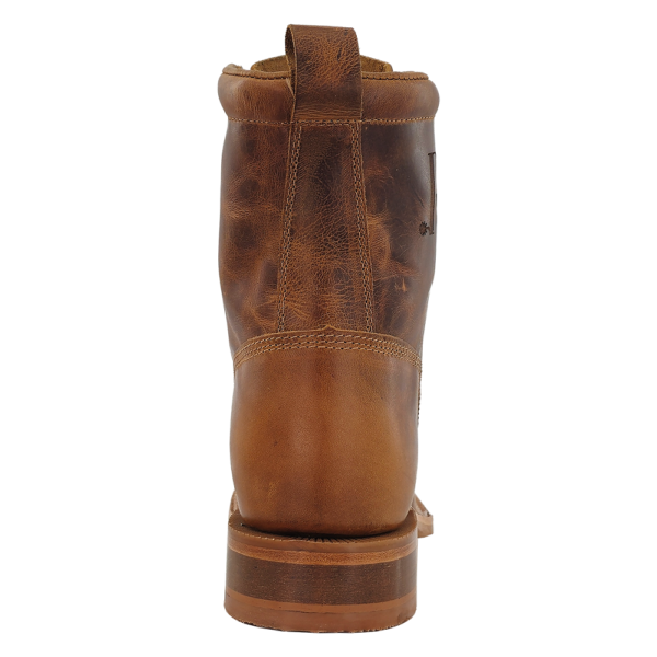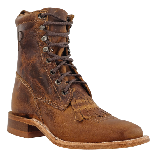 7″ Height; Cowhide Leather Boot; Lace Up Entry; Heel Pull Tab For Easy On; Leather Wrapped Memory Foam Insole; Steel Shank; Leather Outsole; Walking Heel; Wide Square Toe; Color: Honey Cowhide; Style #RWL8917-2